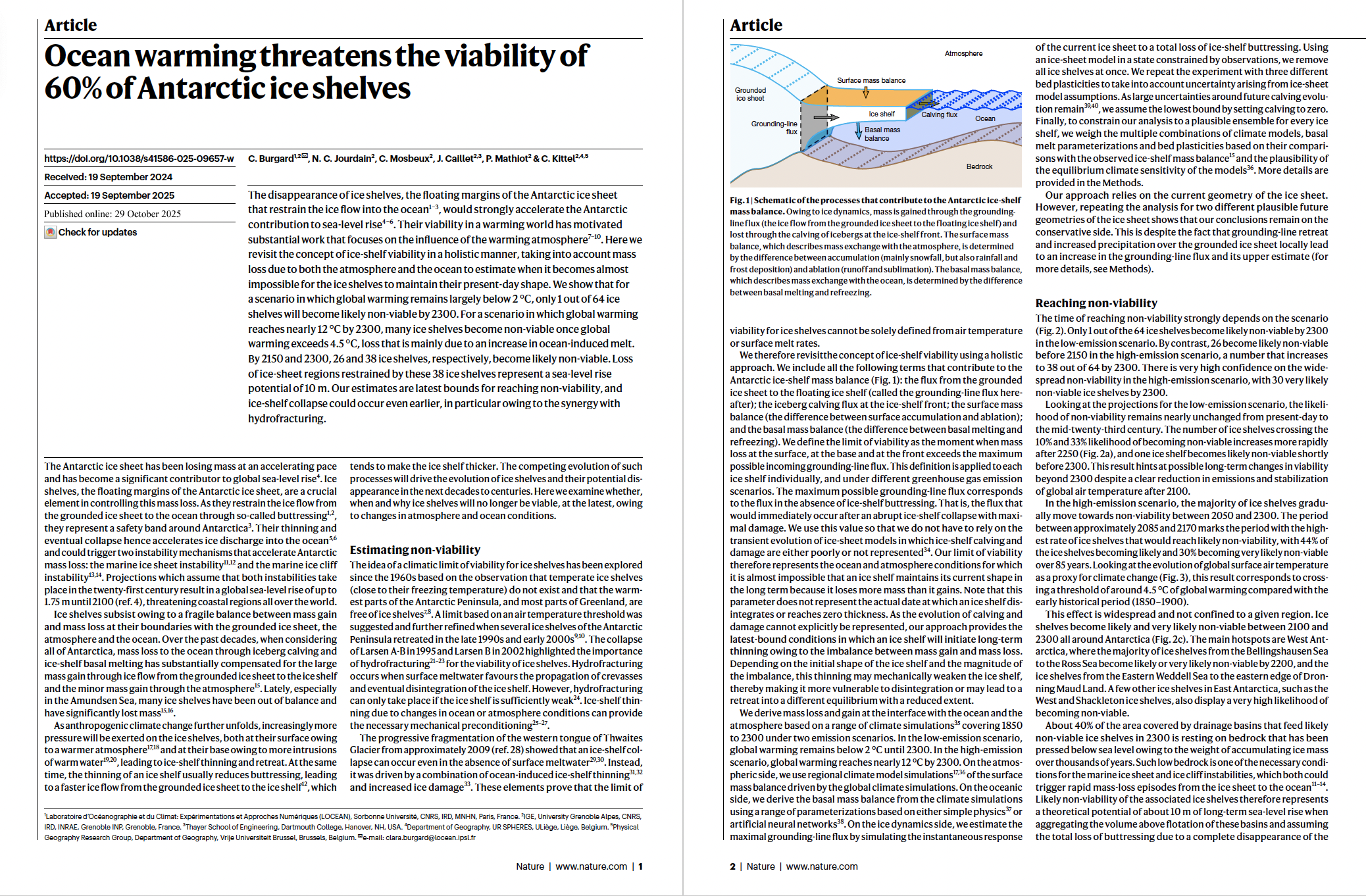 Burgard, C., Jourdain, N. C., Mosbeux, C., Caillet, J., Mathiot, P., Kittel, C. (2025). Ocean warming threatens the viability of 60% of Antarctic ice shelves. Nature, 647, 102–108. doi:10.1038/s41586-025-09657-w